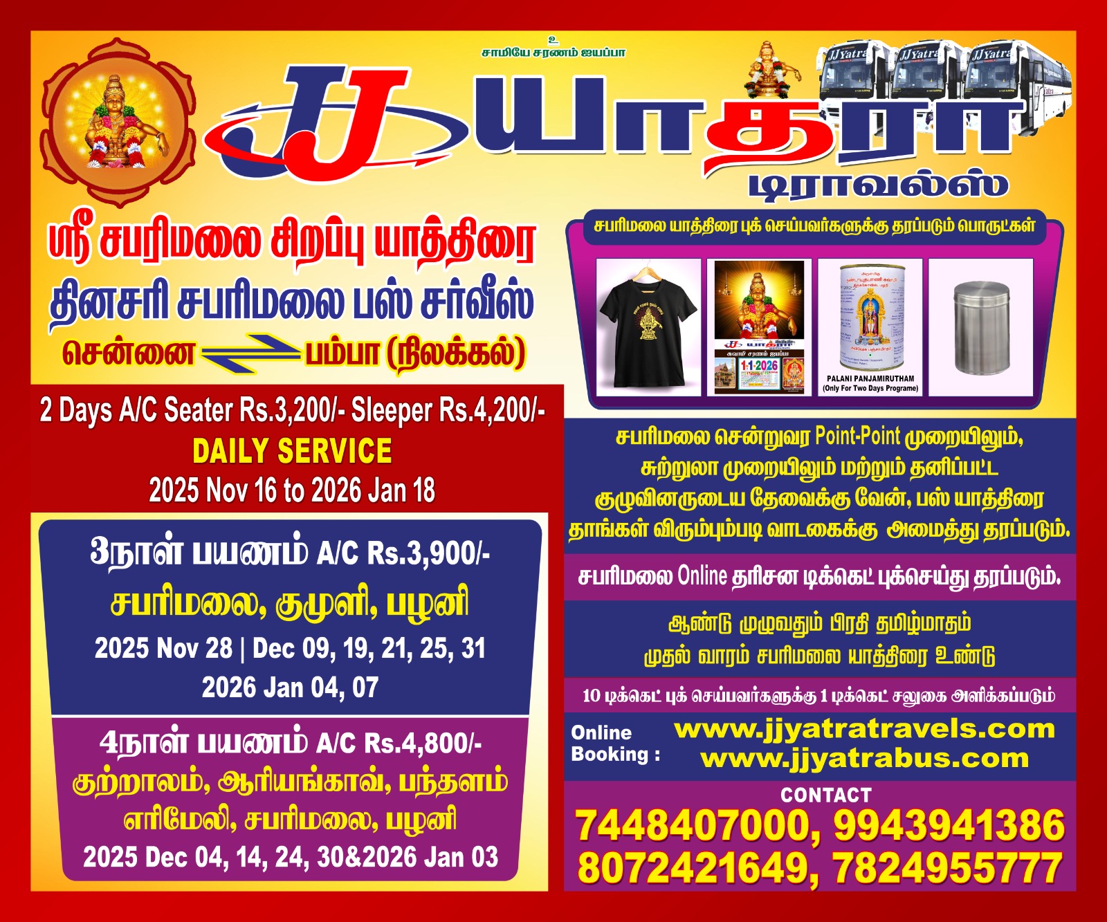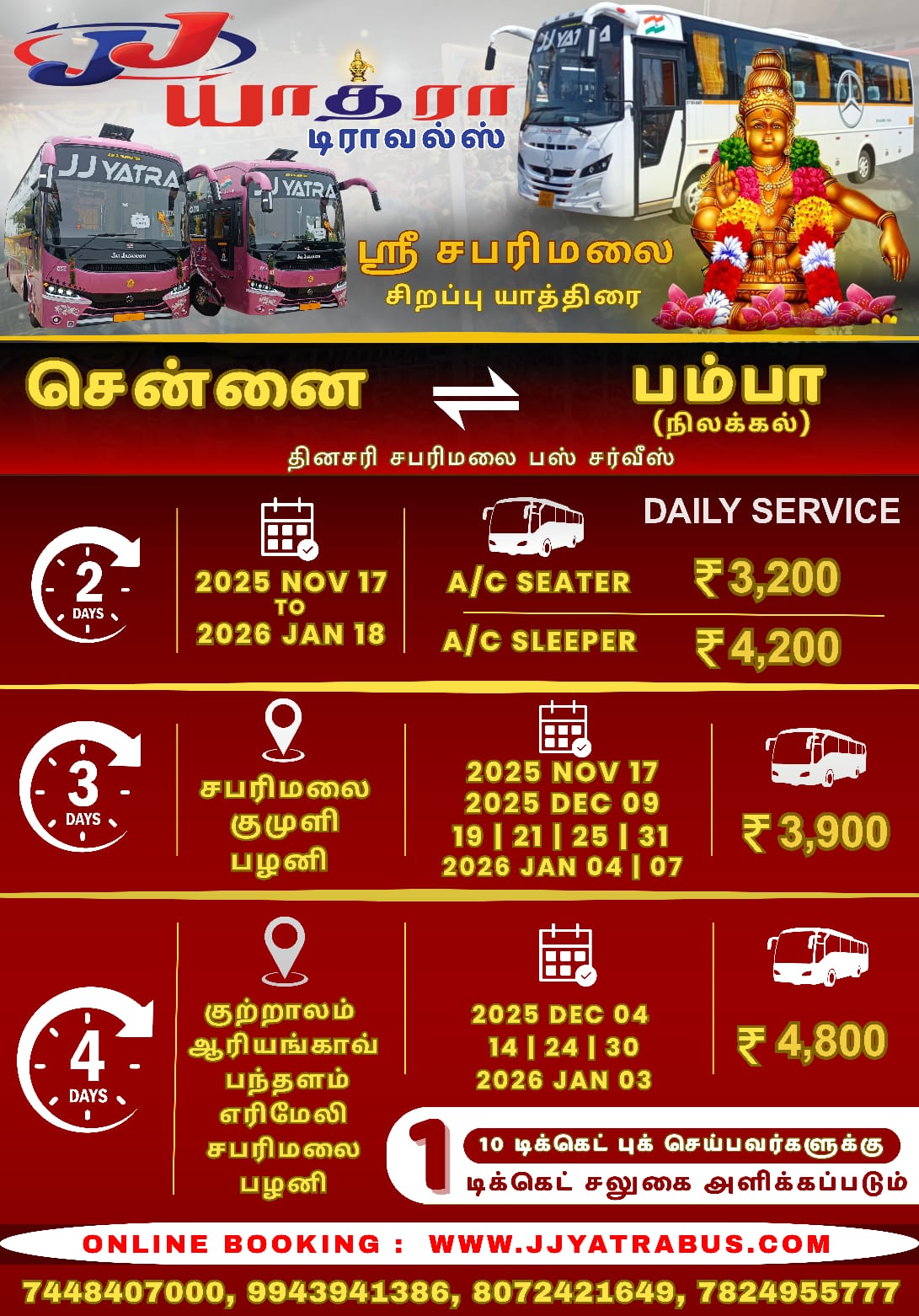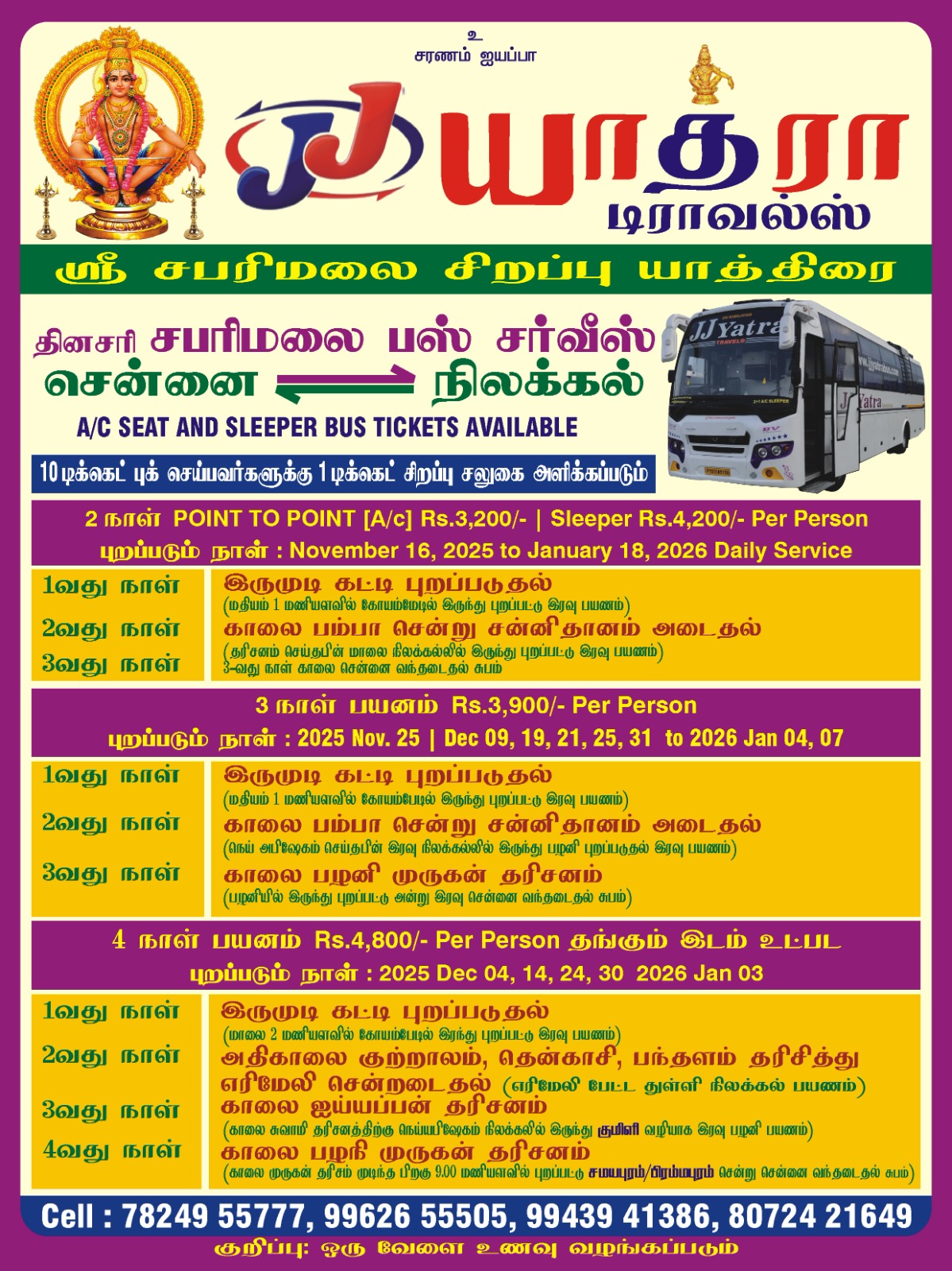 - Chennai to Sabarimala sharing basis is also available